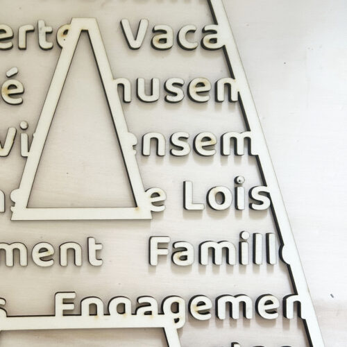 Et non, ce n’est pas un luminaire en bois que vous y verrez, mais un logo réalisé sur mesure à le demande de l’association ASI. Nous avons utilisé notre créativité et notre savoir faire dans le travail du bois pour proposer un logo unique et adapté à la décoration d’intérieur toute fraîche des locaux.